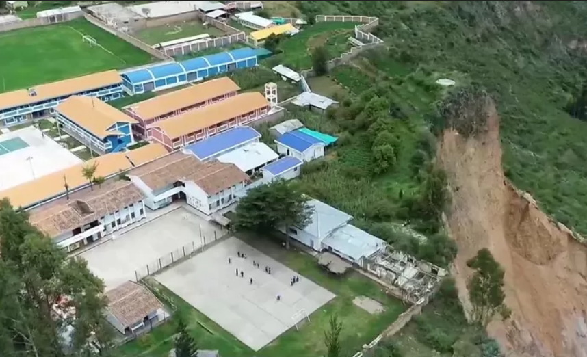 El colegio Basilio Auqui, ubicado en el distrito de Huancapi, provincia de Víctor Fajardo, Ayacucho, enfrenta un riesgo inminente tras la erosión causada por el